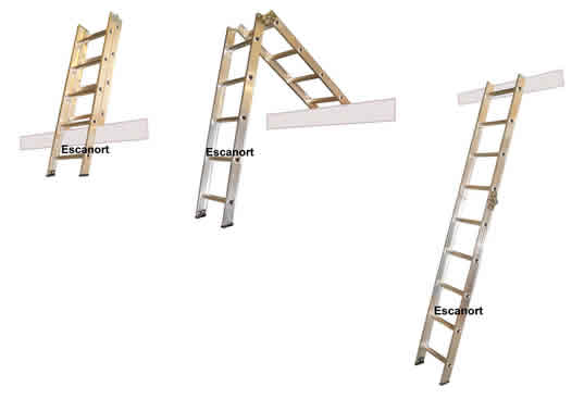 Tramo plegable para entrepisos construido en aluminio con peldaño plano de 80 mm de profundidad. |