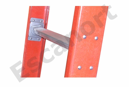 _ Sistema de unión de los peldaños por medio de una placa remachada al lateral.